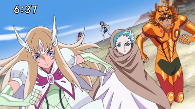 Il clima è quello da gita in terza liceo, subito dopo aver abbandonato a tradimento qualche compagno secchione all'autogrill. Ma a proposito di compagni, Dov'è che sono gli altri?, si chiede a un certo punto Aria dai capelli rozzi. Col fatto che sì, insomma, di Haruto il Ninja Zingaro e Ryūhō il dragoncino problematico non c'è più traccia da due puntate. E che Eden di Orione a questo punto è facile che l'abbiano preso proprio a lavorare in un altro cartone.